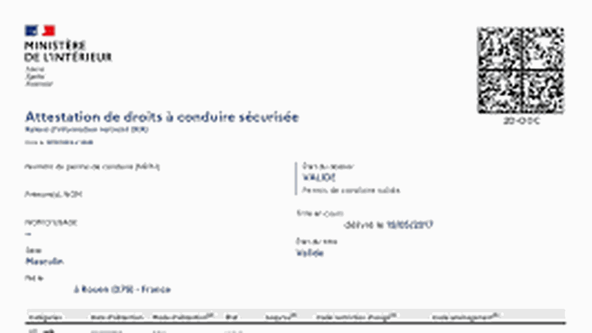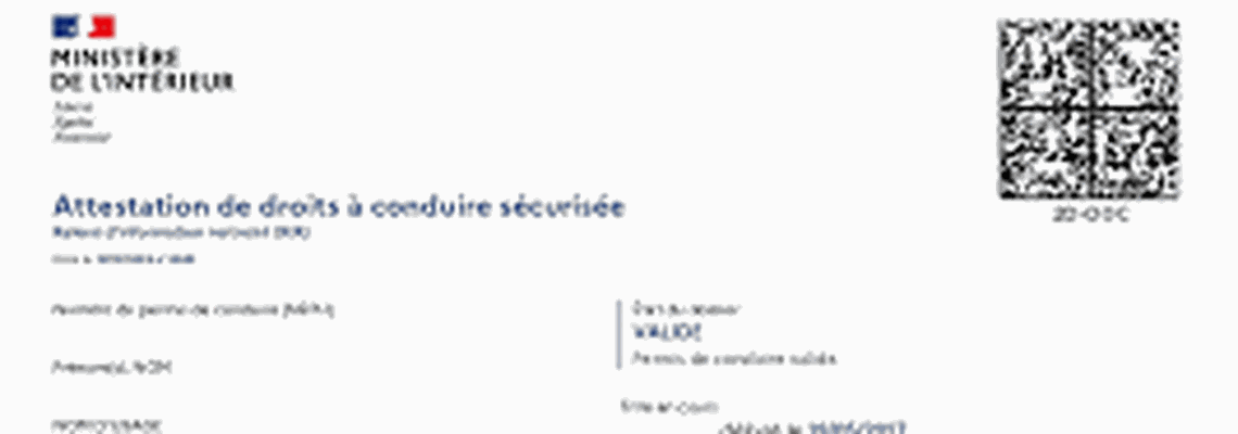 L'Attestation de Droits à Conduire Sécurisée est un document officiel, dématérialisé, qui prouve que vous êtes bien titulaire d'un permis de conduire valide. Elle vous permettra de justifier vos droits à conduire auprès d'une autorité étrangère ou même d'un loueur de véhicules. Toujours accompagnée de votre permis de conduire !